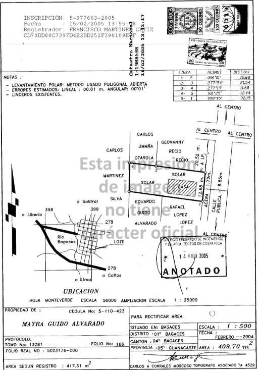 Dirección inmueble: Guanacaste-Bagaces-Bagaces- de la esquina sureste del parque de bagaces, 165 m al sur.