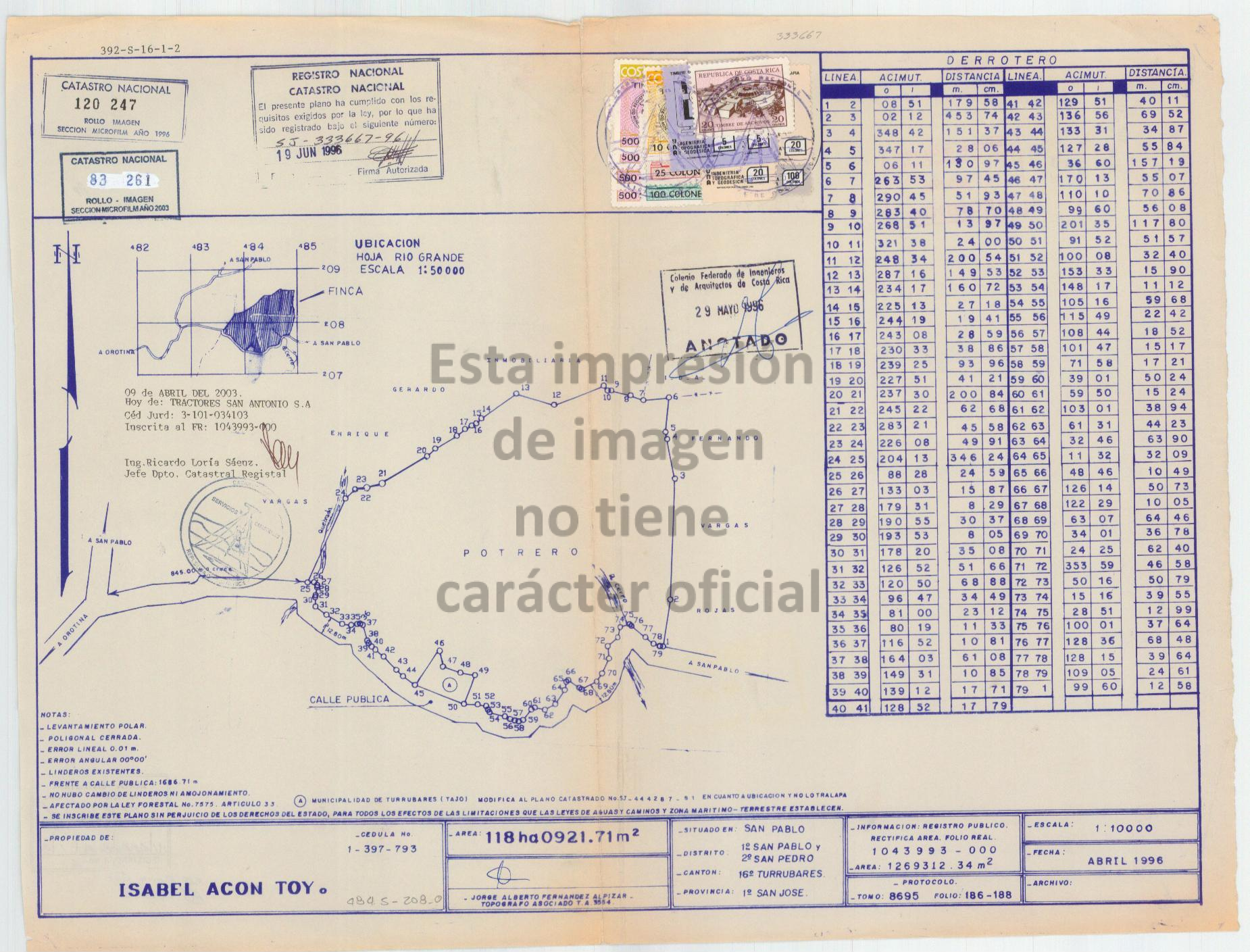 El Banco Nacional de Costa Rica vende este terreno con construcciones, tomado en referencia con base en el plano SJ- 0333667-1996, según estudio de registro, así como se indica en el avaluó 214-11601004399300-2024-U realizado por Ing JOSE FABIO AZOFEIFA ARIAS informe realizado 30 de del 2024. Según indica el Registro Público el inmueble matrícula folio real número 1-43993-000 de la provincia de Alajuela tiene una cabida de 1.180.921 metros con 71 decímetros cuadrados. La propiedad comprende de de un terreno sin construciones ,El sujeto colinda al oeste con una quebrada. Al ser una propiedad tan grande, con topografía tan onduladas y en algunos sectores con pendientes superiores al 60%, siempre existe la posibilidad de ocurrir algunos deslizamientos. Si se desea mayor detalle sobre deslizamiento se recomienda contratar un estudio geotécnico o geológico. Dicho estudio se sale de los alcances del presente avalúo. El día de la visita de inspección no se observaron medidores de servicios de agua y electricidad instalados y en funcionamiento, se recomienda solicitar Certificación de Disponibilidad de Servicios a los proveedores correspondientes. El comprador acepta el terreno y los linderos con la situación indicada anteriormente y el cartel de venta, lo cual se indica en el avalúo 214-11601004399300-2024-U -supra indicado de la propiedad y sin demarcación topográfica de acuerdo al plano catastrado y a lo que indica el estudio del Registro Nacional. Se les advierte a los posibles oferentes que la propiedad se encuentra en Zona Catastrada; con base en el sistema de Información del Registro Inmobiliario (SIRI) El plano de catastro SJ-0743462-1988 relacionado a la finca 1-499711-000 presenta algunas diferencias en referencia a la calle que se indica en el plano donde no coincide en ubicación con lo que se observa en sitio y la referencia a esquina del plano de catastro. Por lo tanto, el oferente deberá confeccionar un nuevo plano de catastro y asumir cualquier impedimento y/o diferencia que esto pueda conllevar. La finca se encuentra en zona catastrada ;No se confecciona plano catastrado nuevo, por lo que quedará a discreción del comprador realizar los trámites legales para la rectificación de la medida registral, y la inscripción registral del plano, que deberá realizarse en la vía notarial y/o judicial, asumiendo el comprador por su cuenta los gastos que genere esa gestión.Se advierte al potencial comprador y eventual adjudicatario que en el inmueble objeto de esta transacción se encuentran depositados materiales, tales como grava y piedra, así como una zaranda metálica, los cuales no forman parte de la propiedad ni han sido incluidos en el avalúo previamente realizado. Por lo tanto, dichos bienes no serán considerados como parte del traspaso de la propiedad ni parte de la negociacion. En consecuencia, al momento de la formalización del traspaso, si los materiales aún se encuentran en el sitio, será responsabilidad exclusiva del nuevo propietario verificar la presencia de los mismos y coordinar, de ser necesario, su retiro o entrega. El banco Nacional de Costa Rica no asume ninguna obligación o responsabilidad respecto a estos materiales, exonerándose de cualquier reclamo futuro en relación a su disposición. El comprador acepta el terreno y los linderos con las medidas señaladas en el cartel de venta, las cuales se indican en el avalúo supra indicado de la propiedad y con demarcación topográfica de acuerdo con el plano catastrado y a lo que indica el estudio del Registro Nacional, cualquier diferencia de cabida existente contra la comprobación de campo, quedará a discreción del comprador realizar los trámites legales para su reposición o rectificación. Asumiendo el comprador por su cuenta los gastos que genere esa gestión; por lo cual el comprador exonera al Banco Nacional de Costa Rica, sus funcionarios y Notario a cargo de realizar la escritura, de cualquier responsabilidad presente o futura por la diferencia de cabida, y renuncia de antemano a cualquier reclamo posterior judicial, administrativo o penal con la firma del cartel de venta y/o formulario de oferta de compra. El Banco Nacional no garantiza ni asume responsabilidad alguna por el tipo de uso del suelo que pueda otorgar la municipalidad respectiva para la propiedad, ni garantiza el estado físico o legal del inmueble. Asimismo, el Banco no se compromete ni tiene la obligación de gestionar, tramitar o conceder permisos de explotación, concesiones u otros tipos de uso sobre la propiedad, ya que dichos aspectos no forman parte del avalúo realizado ni están contemplados en el valor tasado del inmueble. Por lo tanto, el adjudicatario o comprador deberá asumir de manera exclusiva cualquier gestión relacionada con el uso del suelo o concesiones, eximiendo al Banco Nacional de toda responsabilidad presente o futura en relación a estos aspectos. Cualquier tipo de trabajo que requiera el inmueble por problemas posteriores a la venta, serán responsabilidad única del comprador, por lo cual el mismo deberá aceptar los bienes en el estado físico y de conservación en que se encuentre. En virtud de lo anterior, el inmueble 1-499711-000 se vende de contado o con financiamiento aplicando restricciones (respetando las políticas y procedimientos del Banco Nacional de Costa Rica), en el sentido que el cliente debe ser sujeto a crédito y la(s) garantía(s) que respaldan el financiamiento deben ser a entera satisfacción del Banco. En caso de que el bien en venta no sea apto para tomarse como garantía crediticia, el banco podrá solicitar garantías adicionales o independientes al bien en venta que sean a entera satisfacción del Banco para poder respaldar el crédito. El Banco Nacional no garantiza los servicios públicos en la propiedad, ni el acceso a los mismos. Dado lo anterior, el oferente deberá inspeccionar la propiedad y de considerarlo necesario, hacer los estudios correspondie