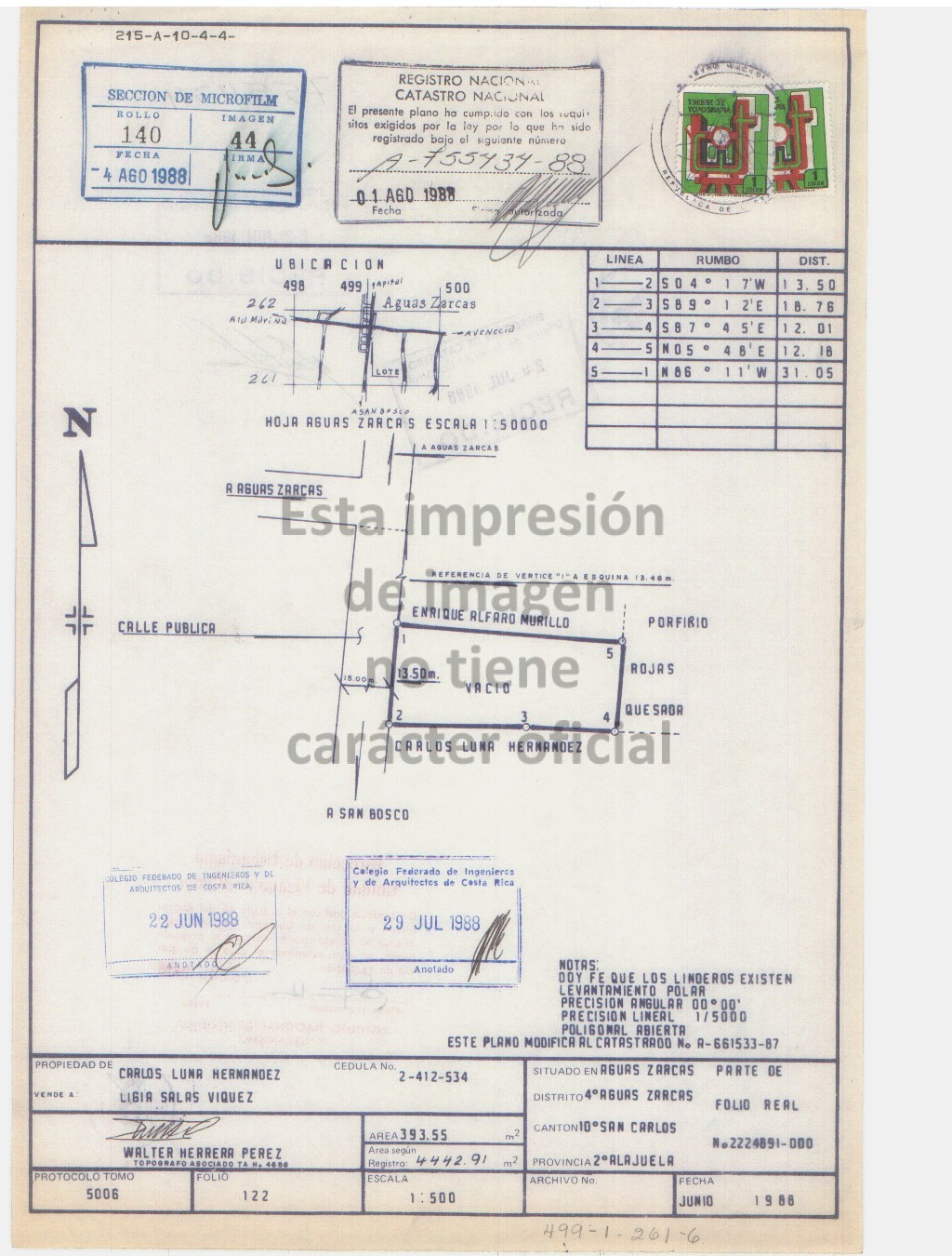 Dirección inmueble: Alajuela – San Carlos – Aguas Zarcas - 30m al sur de la esquina sureste de la Iglesia Católica