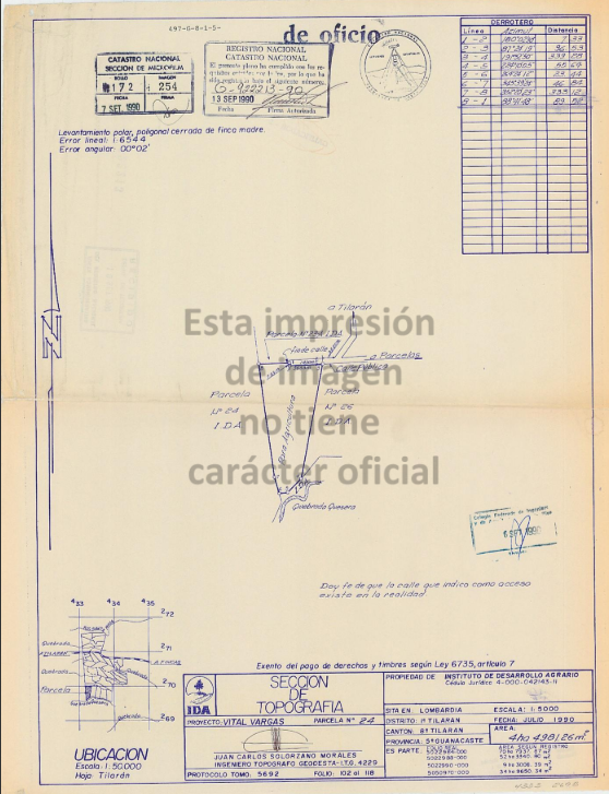 Terreno de topografía ondulada de uso agrícola. Se vende de contado o con garantía adicional a entera satisfacción del Banco, cuando el valor del bien que se adquiere y que queda como garantía, tomado al 100% de responsabilidad, cubre en un 100% el monto solicitado, siempre y cuando el deudor obtenga sus ingresos en la misma moneda del crédito que se está otorgando. En caso de que el bien en venta no sea apto para tomarse como garantía crediticia, el banco podrá solicitar garantías adicionales o independientes al bien en venta que sean a entera satisfacción del Banco para poder respaldar el crédito. Cualquier tipo de trabajo que requiera el inmueble por problemas posteriores a la venta, será responsabilidad única del comprador, por lo cual el mismo deberá aceptar el bien en el estado físico y de conservación en que se encuentre. El adjudicatario con la firma de la declaración jurada que es parte del cartel de oferta, acepta expresamente y de manera voluntaria, que deberá asumir por su cuenta, todas aquellas facturaciones pendientes de pago por concepto de servicios públicos de períodos posteriores a la fecha de celebración del acto de firma de la escritura de traspaso ante el notario público correspondiente, por cuanto se constituye como una obligación por parte del oferente; realizar las consultas pertinentes ante las empresas proveedoras de esos servicios a fin de constatar la existencia o no de facturaciones pendientes de previo a presentar su oferta. Esta propiedad se vende según informe de avalúo N. 214-50801007293900-2025-R del 11/09/2025, elaborado por Ing Alexander Gomez Carranza. Con base en el informe técnico DPSC-AVB-2025-309 emitido por la Dirección de Procesamiento y Servicios de Crédito del Banco Nacional de Costa Rica, se hace constar que el bien inmueble identificado como finca número 5-72939, correspondiente al bien 6840-1, presenta observaciones de carácter técnico-topográfico que podrían incidir en su delimitación física y jurídica. Dicho informe fue elaborado por el ingeniero topógrafo Gustavo Andrés Alvarado González, en fecha 03 de marzo de 2025, y se encuentra debidamente firmado digitalmente conforme a la Ley 8454. Advertencias Técnicas: Incongruencias entre plano catastrado y realidad física ; El plano G-922213-1990 no refleja con precisión los linderos norte y sur del inmueble, Se detectó una diferencia de 3.13 metros en la referencia de esquina, lo cual genera una discrepancia entre la medida registrada (35.25 m) y la medida real (38.38 m).Traslape con finca colindante: En el lindero sur, se identificó un traslape de aproximadamente 407 m² con la finca 5-46707, plano G-1342316-2009, Esta situación podría derivar en conflictos de colindancia, afectación de derechos posesorios o litigios por invasión de área: Invasión física por construcción vecina: La segregación S2 (plano G-1522708-2011) presenta una construcción que excede los límites establecidos en su plano, invadiendo el resto de la finca 6840-1 en los linderos sur y oeste. El replanteo realizado confirma que dicha construcción se encuentra fuera de los vértices legales del plano registrado. Limitación de Responsabilidad Legal: El BNCR manifiesta que ha puesto en conocimiento del comprador todas las observaciones técnicas contenidas en el informe DPSC-AVB-2025-309, incluyendo los planos, replanteos, y evidencias fotográficas que sustentan las advertencias aquí descritas. Por lo tanto, el cliente comprador y eventual adjudicatario: Reconoce haber sido informado de manera clara, completa y suficiente sobre las condiciones físicas y registrales del inmueble. Acepta adquirir el bien en el estado en que se encuentra, tanto en su configuración física como en su situación registral. Renuncia expresamente a formular reclamos, demandas o acciones legales contra el vendedor por cualquier afectación derivada de las incongruencias topográficas, traslapes, invasiones físicas o errores de planos que se hayan identificado o que pudieran surgir con posterioridad. Se compromete a asumir cualquier gestión técnica, administrativa o judicial que sea necesaria para la regularización de los planos, deslindes o rectificaciones ante el Registro Nacional, Catastro Nacional o autoridades competentes. Reserva de Derechos: El vendedor se reserva el derecho de aportar el informe técnico DPSC-AVB-2025-309 como prueba documental en cualquier procedimiento administrativo o judicial que pudiera surgir, con el fin de demostrar la debida diligencia en la divulgación de las condiciones del inmueble.