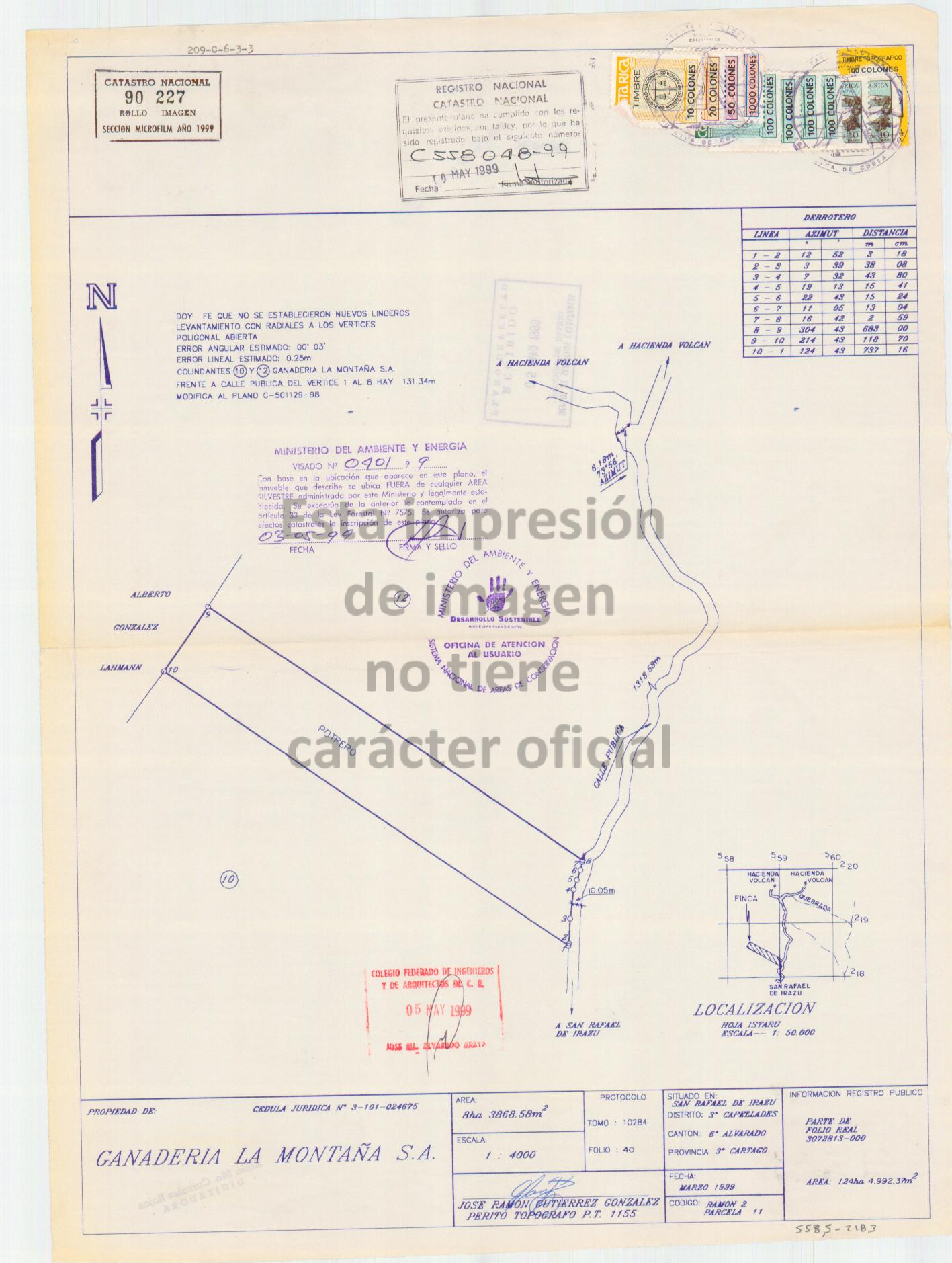 Nota: propiedad requiere delimitación y cercado de los vértices por parte de un topógrafo con mojones de cemento para definir el perímetro del terreno este gasto corre por cuenta del eventual adjudicatario, cualquier diferencia de cabida existente contra la comprobación de campo, quedará a discreción del comprador realizar los trámites legales para su reposición o rectificación, por lo que el comprador exonera al Banco Nacional de Costa Rica de cualquier responsabilidad presente o futura por el exceso o faltante y renuncia a cualquier reclamo posterior judicial y/o administrativo con la firma del cartel de venta y/o formulario de oferta de compra.