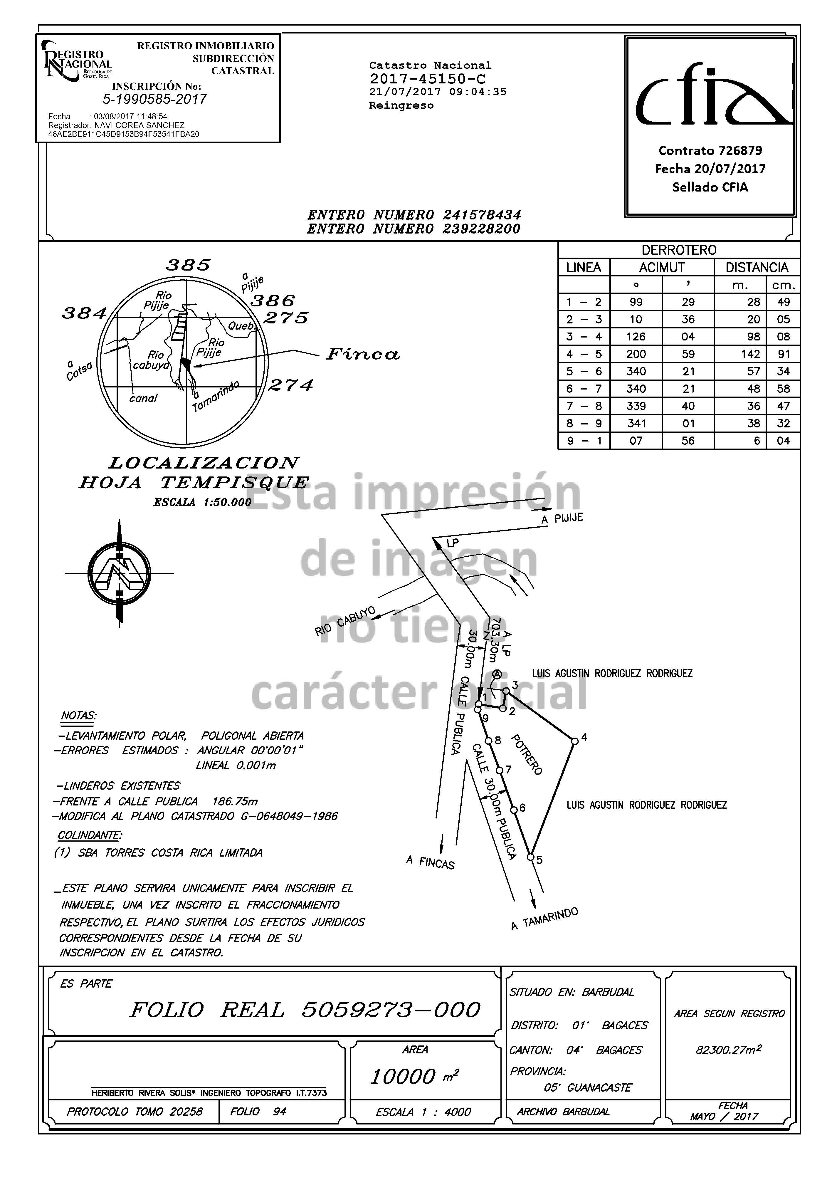 Descripción: Terreno de topografía plana de uso agrícola. La propiedad se vende en referencia al plano de registro numero -G-1990585-2017, que posee una cabida de área de10.000m2. Se financia como máximo hasta el 100% del monto del terreno por¢ 8.250.000,00 , o con garantía adicional a entera satisfacción del Banco, cuando el valor del bien que se adquiere y que queda como garantía, tomado al 100% de responsabilidad, cubre en un 100% el monto solicitado, siempre y cuando el deudor obtenga sus ingresos en la misma moneda del crédito que se está otorgando. En caso de que el bien en venta no sea apto para tomarse como garantía crediticia, el banco podrá solicitar garantías adicionales o independientes al bien en venta que sean a entera satisfacción del Banco para poder respaldar el crédito. En caso de requerir financiamiento utilizando la misma propiedad como garantía, el oferente deberá solicitarlo y quedará a criterio del ente aprobador aceptarlo o rechazarlo. Cualquier tipo de trabajo que requiera el inmueble por problemas posteriores a la venta, será responsabilidad única del comprador, por lo cual el mismo deberá aceptar el bien en el estado físico y de conservación en que se encuentre. El adjudicatario con la firma de la declaración jurada que es parte del cartel de oferta, acepta expresamente y de manera voluntaria, que deberá asumir por su cuenta, todas aquellas facturaciones pendientes de pago por concepto deservicios públicos de períodos posteriores a la fecha de celebración del acto de firma de la escritura de traspaso ante el notario público correspondiente, por cuanto se constituye como una obligación por parte del oferente; realizarlas consultas pertinentes ante las empresas proveedoras de esos servicios a finde constatar la existencia o no de facturaciones pendientes de previo a presentar su oferta. Esta propiedad se vende según informe de avalúo N. 328-50401022411000-2023-R del 30/10/2023,elaborado por Ing Johnathan Gerardo Duarte Rodriguez. Indica el informe de avalúo: "Terreno dedicado a la siembra de caña de azúcar, no se localizan construcciones en la propiedad. No se localizan delimitación clara entre los colindantes norte y este y la propiedad valorada. La calle pública que se indica entre los puntos 5 y 9 del derrotero no existe en la realidad. La propiedad esta cultivada de caña de azúcar actualmente sin edificaciones con un regular manejo". Locual el comprador y eventual adjudicatario deberá de hacerse cargo de cualquiersituación de precarismo o invasión a la propiedad el mismo deberá de asumir lascostas de cualquier proceso legal o administrativo que garanticen el dominio dela propiedad. En este caso el eventual comprador debe revisar y verificar el inmueble, previamente a la compra y aceptar expresamente el estado legal y condición actual de dicho inmueble ; renunciando a cualquier reclamo presente y/o futuro y liberando de toda responsabilidad al Banco Nacional de Costa Rica , Funcionarios y Notarios por esta situación, El Banco Nacional informa al comprador que cualquier situación de origen natural —incluyendo, a modo de ejemplo, inundaciones, deslizamientos u otros fenómenos similares— no es conocida ni asumida por la institución Por lo cual no se pueden asumir como vicios ocultos. En consecuencia, el Banco Nacional no se responsabiliza por dichos hechos ni por sus efectos. Se recomienda al interesado realizar las verificaciones técnicas pertinentes, incluyendo la consulta con un profesional geólogo y topógrafo de su confianza, antes de gestionar la compra. La responsabilidad de asegurar la idoneidad del terreno y de adoptar las medidas necesarias recae exclusivamente en el comprador. La presente propiedad se ofrece en venta sin demarcación ni levantamiento topográfico previo. En consecuencia, corresponde al cliente comprador o eventual adjudicatario verificar el estado del plano y su correspondencia con la realidad física del sitio antes de formalizar la compra. El Banco Nacional no asume responsabilidad alguna respecto a la exactitud, delimitación o ubicación del inmueble. La obligación de realizar las comprobaciones técnicas y legales necesarias recae exclusivamente en el interesado, quien deberá asegurarse de la concordancia entre la documentación registral y la situación material del terreno. El comprador acepta el terreno con los linderos y las medidas señaladas en el cartel de venta, las cuales se indican en el avalúo supra indicado de la propiedad de acuerdo al plano catastrado y a lo que indica el estudio del Registro Nacional; cualquier diferencia de cabida existente contra la comprobación de campo, quedará a discreción del comprador realizar los trámites legales para su reposición o rectificación; asumiendo el comprador por su cuenta los gastos que genere esa gestión; por lo cual el comprador exonera al Banco Nacional de Costa Rica, sus funcionarios y notario a cargo de realizar la escritura, de cualquier responsabilidad presente o futura por la diferencia de cabida, y renuncia de antemano a cualquier reclamo posterior judicial, administrativo o penal con la firma del cartel de venta y/o formulario de oferta de compra. Requiere demarcado de linderos según plano y levantado de cercas, este gasto correrá por cuenta del eventual adjudicatario. El eventual oferente deberá presentar una declaración jurada, en la que se indique que acepta el bien en las condiciones actuales y ha corroborado los servicios públicos indicados en el avalúo con las instituciones correspondientes; así como también el uso de suelos de la propiedad ante la municipalidad respectiva. Se aclara que, durante el primeraño del crédito, el rubro por concepto de póliza de vida, se cancelará el díade la firma de la escritura de traspaso de forma anticipada por cuenta deladjudicatario, (este monto podrá variar dependiendo de factores como edad deldeudor, nivel de endeudamiento general del deudor, monto 