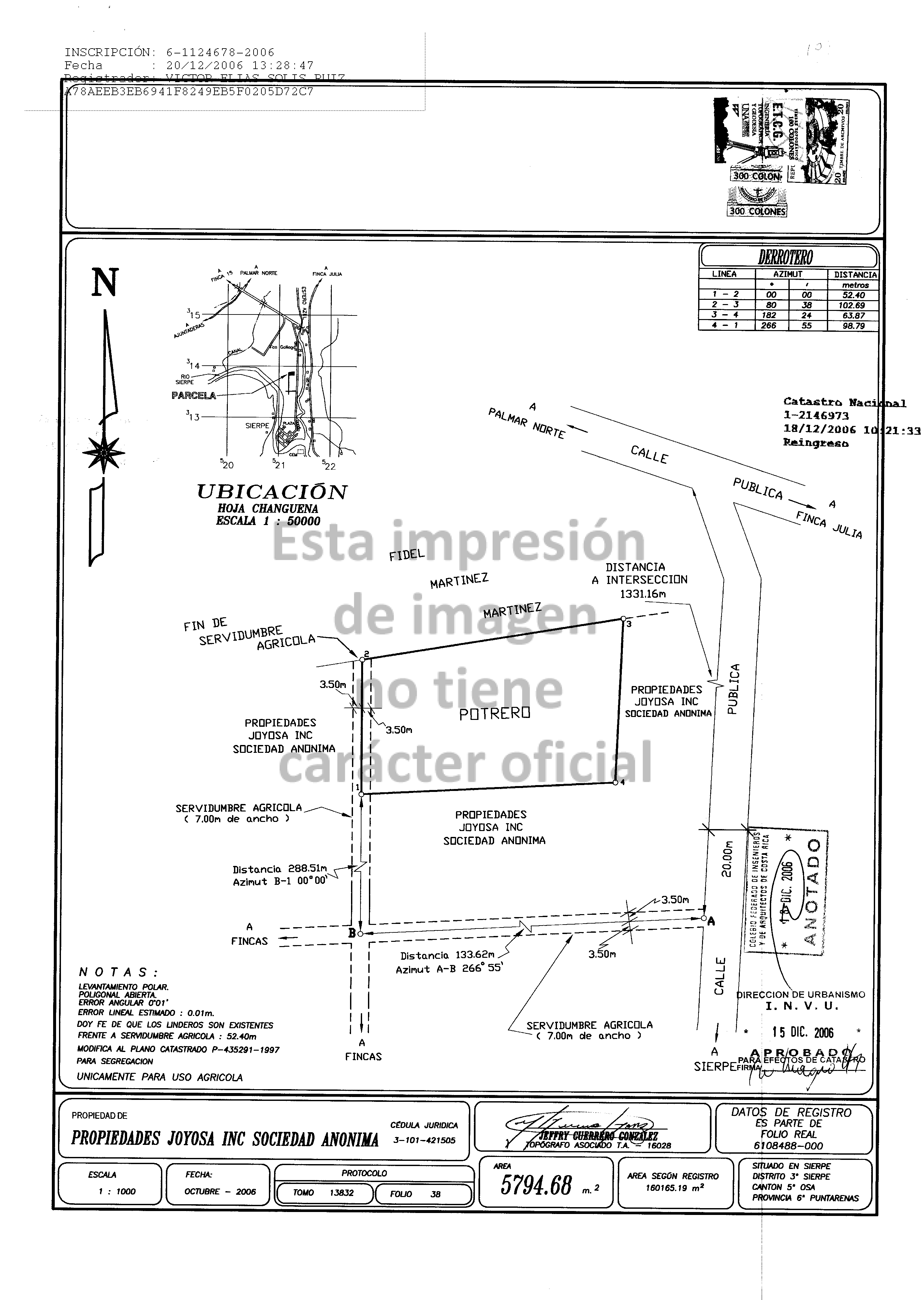 REPUBLICA DE COSTA RICA REGISTRO NACIONAL CONSULTA POR NUMERO DE FINCA MATRICULA: 154264---000 Privacidad – Términos INICIA EL: 08-FEB-2007