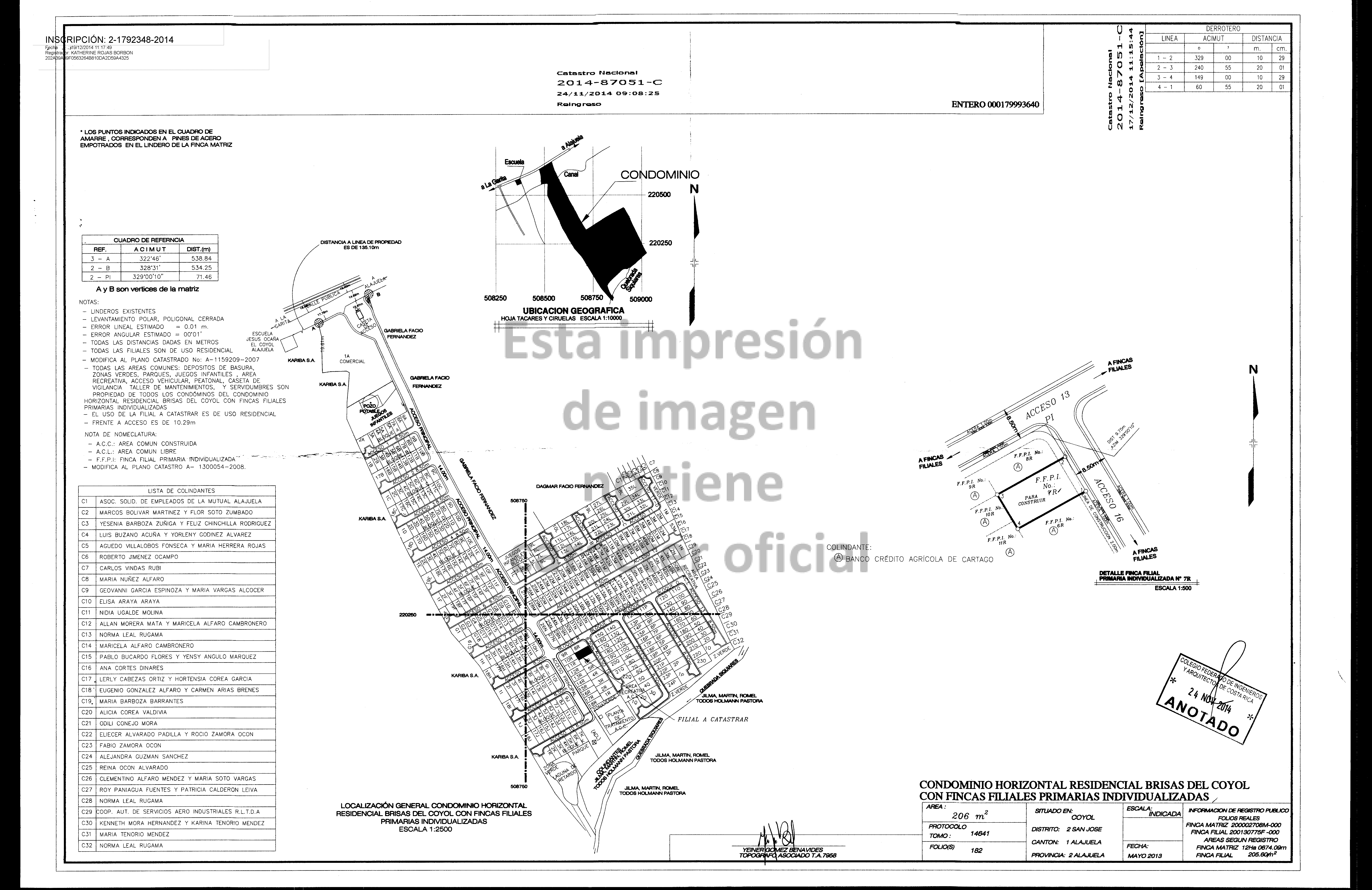 Terreno en condominio de topografía plana. Esta propiedad se vende según informe de avalúo N. 214-2010201307750F-2024-C del 10/6/2024, elaborado por Ana Luisa Mayorga Jiménez. Requiere demarcado de linderos según plano y levantado de cercas, este gasto correrá por cuenta del eventual adjudicatario. El eventual oferente deberá presentar una declaración jurada, en la que se indique que acepta el bien en las condiciones actuales y ha corroborado los servicios públicos indicados en el avalúo con las instituciones correspondientes; así como también el uso de suelos de la propiedad ante la municipalidad respectiva. Se aclara que durante el primer año del crédito, el rubro por concepto de póliza de vida, se cancelará el día de la firma de la escritura de traspaso de forma anticipada por cuenta del adjudicatario, monto aproximado: ¢400.000,00 (este monto podrá variar dependiendo de factores como edad del deudor, nivel de endeudamiento general del deudor, monto ofrecido por la propiedad por el adjudicatario, entre otros), este monto NO es financiable, lo que significa que para todos los casos, correrá por cuenta del adjudicatario. Cuota de mantenimiento mensual del condominio: ¢70.000,00 aproximadamente, se aclara que el eventual adjudicatario está en la obligación de cancelar mensualmente la cuota de mantenimiento de condominio una vez que firma la escritura de traspaso que lo convierte en propietario, así como de revisar, aceptar y darse por enterado de las disposiciones que incluya el reglamento del condominio y los acuerdos que se tomen en las asambleas de condominio. Cualquier tipo de trabajo que requiera el inmueble por problemas posteriores a la venta, será responsabilidad única del comprador, por lo cual el mismo deberá aceptar el bien en el estado físico y de conservación en que se encuentre. El adjudicatario con la firma de la declaración jurada que es parte del cartel de oferta, acepta expresamente y de manera voluntaria, que deberá asumir por su cuenta, todas aquellas facturaciones pendientes de pago por concepto de servicios públicos de períodos posteriores a la fecha de celebración del acto de firma de la escritura de traspaso ante el notario público correspondiente, por cuanto se constituye como una obligación por parte del oferente; realizar las consultas pertinentes ante las empresas proveedoras de esos servicios a fin de constatar la existencia o no de facturaciones pendientes de previo a presentar su oferta. El comprador acepta el terreno con los linderos y las medidas señaladas en el cartel de venta, las cuales se indican en el avalúo supra indicado de la propiedad de acuerdo al plano catastrado y a lo que indica el estudio del Registro Nacional; cualquier diferencia de cabida existente contra la comprobación de campo, quedará a discreción del comprador realizar los trámites legales para su reposición o rectificación; asumiendo el comprador por su cuenta los gastos que genere esa gestión; por lo cual el comprador exonera al Banco Nacional de Costa Rica, sus funcionarios y notario a cargo de realizar la escritura, de cualquier responsabilidad presente o futura por la diferencia de cabida, y renuncia de antemano a cualquier reclamo posterior judicial, administrativo o penal con la firma del cartel de venta y/o formulario de oferta de compra. Requiere demarcado de linderos según plano y levantado de cercas, este gasto correrá por cuenta del eventual adjudicatario. Los timbres de traspaso e hipoteca correrán por cuenta del adjudicatario, monto aproximado a pagar por concepto de timbres de traspaso: ¢2.200.000,00, monto aproximado a pagar por concepto de timbres de hipoteca: ¢220.000,00. Se financia como máximo hasta el 100% del monto del avalúo por ¢39.797.346,00 o más, con garantía adicional a entera satisfacción del Banco, cuando el valor del bien que se adquiere y que queda como garantía, tomado al 100% de responsabilidad, cubre en un 100% el monto solicitado, siempre y cuando el deudor obtenga sus ingresos en la misma moneda del crédito que se está otorgando. En caso de que el bien en venta no sea apto para tomarse como garantía crediticia, el banco podrá solicitar garantías adicionales o independientes al bien en venta que sean a entera satisfacción del Banco para poder respaldar el crédito. En caso de requerir financiamiento utilizando la misma propiedad como garantía, el oferente deberá solicitarlo y quedará a criterio del ente aprobador aceptarlo o rechazarlo. En el caso de requerir financiamiento por la compra de este bien, pagará una cuota aproximada de ¢220.000 por mes; se aclara que los cálculos realizados están basados en el valor informativo de publicación, los mismos son aproximados, por lo que podrán variar, dependiendo de la oferta que realice el cliente. Es recomendable que el cliente interesado en ofertar se someta a un pre-estudio de crédito, antes de ofertar por la propiedad de su interés.