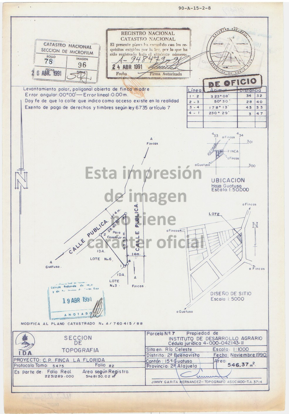 INDEPENDIENTES QUE SEAN DE ENTERA SATISFACCIÓN DEL BANCO NACIONAL PARA PODER RESPALDAR EL CRÉDITO. Observaciones del perito valuador: Según plano catastrado el frente de la propiedad es calle pública, sin embargo, el mismo no se encuentra registrado como tal en el inventario de caminos municipal.