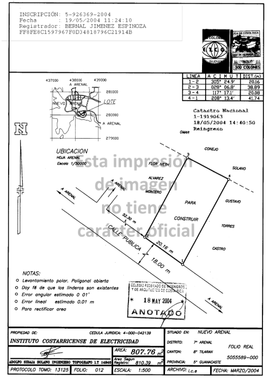 Descripción: terreno de topografía mixta . Esta propiedad se vende según informe de avalúo N. 52-50807005558900-2024-U del 20/09/2024, elaborado por Alejandro Campos Bogantes, este se vende en relación al plano catastro número G-0926369-2024. Requiere demarcado de linderos según plano y levantado de cercas, este gasto correrá por cuenta del eventual adjudicatario. El eventual oferente deberá presentar una declaración jurada, en la que se indique que acepta el bien en las condiciones actuales y ha corroborado los servicios públicos indicados en el avalúo con las instituciones correspondientes; así como también el uso de suelos de la propiedad ante la municipalidad respectiva. El Banco Nacional informa al comprador que cualquier situación de origen natural —incluyendo, a modo de ejemplo, inundaciones, deslizamientos u otros fenómenos similares— noes conocida ni asumida por la institución Por lo cual no se pueden asumir como vicios ocultos. En consecuencia, el Banco Nacional no se responsabiliza por dichos hechos ni por sus efectos. Se recomienda al interesado realizar las verificaciones técnicas pertinentes, incluyendo la consulta con un profesional geólogo y topógrafo de su confianza, antes de gestionar la compra. La responsabilidad de asegurar la idoneidad del terreno y de adoptar las medidas necesarias recae exclusivamente en el comprador. El eventual comprador acepta la propiedad con las anotaciones Citas: 351-04462-01-0923-002.  Se aclara que durante el primer año del crédito, el rubro por concepto de póliza de vida se cancelará el día de la firma de la escritura de traspaso de forma anticipada por cuenta del adjudicatario (este monto podrá variar dependiendo de factores como edad del deudor, nivel de endeudamiento general del deudor, monto ofrecido por la propiedad por el adjudicatario, entre otros), este monto NO es financiable, lo que significa que para todos los casos, correrá por cuenta del adjudicatario. Cualquier tipo de trabajo que requiera el inmueble por problemas posteriores a la venta, será responsabilidad única del comprador, por lo cual el mismo deberá aceptar el bien en el estado físico y de conservación en que se encuentre. El adjudicatario con la firma de la declaración jurada que es parte del cartel de oferta, acepta expresamente y de manera voluntaria, que deberá asumir por su cuenta, todas aquellas facturaciones pendientes de pago por concepto de servicios públicos de períodos posteriores a la fecha de celebración del acto de firma de la escritura de traspaso ante el notario público correspondiente, por cuanto se constituye como una obligación por parte del oferente; realizar las consultas pertinentes ante las empresas proveedoras de esos servicios a fin de constatar la existencia o no de facturaciones pendientes de previo a presentar su oferta. El comprador acepta el terreno con los linderos y las medidas señaladas en el cartel de venta, las cuales se indican en el avalúo supra indicado de la propiedad de acuerdo al plano catastrado y a lo que indica el estudio del Registro Nacional; cualquier diferencia de cabida existente contra la comprobación de campo, quedará a discreción del comprador realizar los trámites legales para su reposición o rectificación; asumiendo el comprador por su cuenta los gastos que genere esa gestión; por lo cual el comprador exonera al Banco Nacional de Costa Rica, sus funcionarios y notario a cargo de realizar la escritura, de cualquier responsabilidad presente o futura por la diferencia de cabida, y renuncia de antemano a cualquier reclamo posterior judicial, administrativo o penal con la firma del cartel de venta y/o formulario de oferta de compra. Requiere demarcado de linderos según plano y levantado de cercas, este gasto correrá por cuenta del eventual adjudicatario. Los timbres de traspaso e hipoteca correrán por cuenta del adjudicatario. En caso de que el bien en venta no sea apto para tomarse como garantía crediticia, el banco podrá solicitar garantías adicionales o independientes al bien en venta que sean a entera satisfacción del Banco para poder respaldar el crédito. En caso de requerir financiamiento utilizando la misma propiedad como garantía, el oferente deberá solicitarlo y quedará a criterio del ente aprobador aceptarlo o rechazarlo. Nota: las visitas se coordinarán todos los viernes de cada semana únicamente con el ejecutivo encargado de cartera de la zona, sujeto a disponibilidad del ejecutivo por lo que se deberá de avisar con dos días de anticipación, además todo tramite y asesoría de venta lo puede realizar con dicho ejecutivo y conocer más de la propiedad previo a presentar la oferta a esta institución; nuestro horario de atención al público es de lunes a viernes de 8:20 am a 4:20 pm.  Es recomendable que el cliente interesado en ofertar se someta a un pre-estudio de crédito, antes de ofertar por la propiedad de su interés.