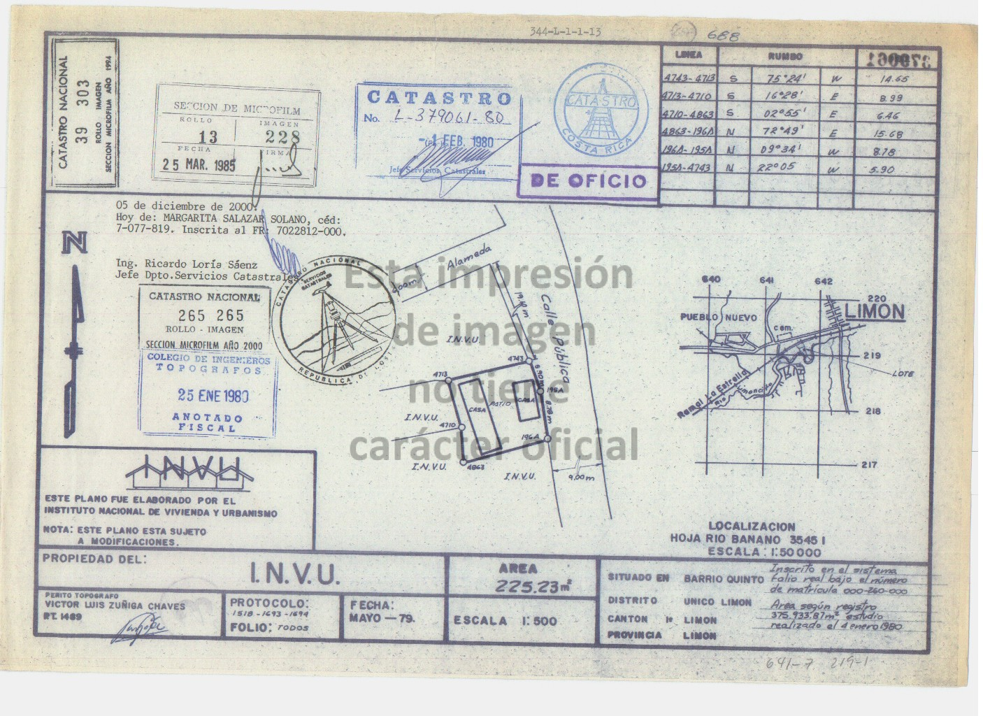 Dirección inmueble: Barrio Quinto, del cementerio de Limón, 100 metros norte y 70 metros sur