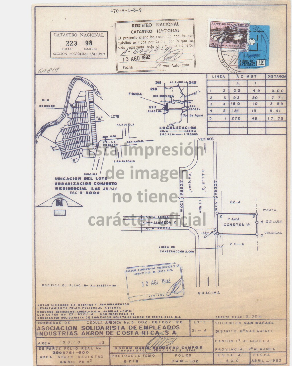 Casa de habitación que posee: sala, comedor, cocina, dos dormitorios, un baño, cuarto de pilas y terraza. Cualquier tipo de trabajo que requiera el inmueble por problemas posteriores a la venta, será responsabilidad única del comprador, por lo cual el mismo deberá aceptar el bien en el estado físico y de conservación en que se encuentre. Esta propiedad se vende según informe de avalúo N. 214-2010400399510F-2025-C del 27/6/2025, elaborado por Diego Valverde Gutiérrez. Indica el informe de avalúo: "Se debe entubar el sistema eléctrico en su totalidad, colocar tapas octogonales y cambiar la cuchilla por un interruptor de breaker según código eléctrico actual y vigente". ANOTACIONES SOBRE LA FINCA: NO HAY GRAVAMENES o AFECTACIONES: SI HAY RESERVAS Y RESTRICCIONES CITAS: 397-18205-01-0820-001 FINCA REFERENCIA: 00009761/000 AFECTA A FINCA: 2-00269250 -000 CANCELACIONES PARCIALES: NO HAY ANOTACIONES DEL GRAVAMEN: NO HAY FINCA REFERENCIA: 00009761/000. Se aclara que el eventual adjudicatario, en caso de requerir financiamiento, deberá comprometerse (de manera contractual en la escritura) a que en un plazo no mayor a dos meses deberá realizar las mejoras en el sistema eléctrico y corregir el tema de las paredes con humedad del baño; todas estas mejoras indicadas en el informe de avalúo; de lo contrario si sufre un siniestro, la aseguradora podría declinar la cobertura de aseguramiento, adicionalmente que, para que pueda ser otorgado el visto bueno de aseguramiento de las edificaciones, se deberá hacer un nuevo informe de inspección posterior a las reparaciones y mejoras, este costo correrá por cuenta del adjudicatario, esto, post formalizado el trámite de financiamiento y efectuada la firma de traspaso. El Banco Nacional no garantiza los servicios públicos en la propiedad, ni el acceso a los mismos. Dado lo anterior, el oferente deberá inspeccionar la propiedad y de considerar lo necesario, hacer los estudios correspondientes para garantizar su uso físico y descartar que existan vicios ocultos, además de hacer las consultas a las municipalidades y entes públicos correspondientes para garantizar su uso de suelo y servicios públicos, según los necesite, así mismo, los permisos de construcción, en caso de que se requieran. Requiere demarcado de linderos según plano y levantado de cercas, este gasto correrá por cuenta del eventual adjudicatario. Cualquier diferencia de cabida existente contra la comprobación de campo, quedará a discreción del comprador realizar los trámites legales para su reposición o rectificación, por lo que el comprador exonera al Banco Nacional de Costa Rica, funcionarios y notario designado de cualquier responsabilidad presente o futura por el exceso o faltante renunciando en este acto a cualquier reclamo posterior judicial y/o administrativo con la firma del cartel de venta y/o formulario de oferta de compra. El adjudicatario con la firma de la declaración jurada que es parte del cartel de oferta, acepta expresamente y de manera voluntaria, que deberá asumir por su cuenta, todas aquellas facturaciones pendientes de pago por concepto de servicios públicos de períodos posteriores a la fecha de celebración del acto de firma de la escritura de traspaso ante el notario público correspondiente, por cuanto se constituye como una obligación por parte del oferente; realizar las consultas pertinentes ante las empresas proveedoras de esos servicios a fin de constatar la existencia o no de facturaciones pendientes de previo a presentar su oferta. El comprador acepta el terreno con los linderos y las medidas señaladas en el cartel de venta, las cuales se indican en el avalúo supra indicado de la propiedad de acuerdo al plano catastrado y a lo que indica el estudio del Registro Nacional; cualquier diferencia de cabida existente contra la comprobación de campo, quedará a discreción del comprador realizar los trámites legales para su reposición o rectificación; asumiendo el comprador por su cuenta los gastos que genere esa gestión; por lo cual el comprador exonera al Banco Nacional de Costa Rica, sus funcionarios y notario a cargo de realizar la escritura, de cualquier responsabilidad presente o futura por la diferencia de cabida, y renuncia de antemano a cualquier reclamo posterior judicial, administrativo o penal con la firma del cartel de venta y/o formulario de oferta de compra. El eventual oferente deberá presentar una declaración jurada, en la que se indique que acepta el bien en las condiciones actuales y ha corroborado los servicios públicos indicados en el avalúo con las instituciones correspondientes; así como también el uso de suelos de la propiedad ante la municipalidad respectiva. Se aclara que durante el primer año del crédito, el rubro por concepto de póliza de vida, se cancelará el día de la firma de la escritura de traspaso de forma anticipada por cuenta del adjudicatario, monto aproximado: ¢300.000,00 (este monto podrá variar dependiendo de factores como edad del deudor, nivel de endeudamiento general del deudor, monto ofrecido por la propiedad por el adjudicatario, entre otros), este monto NO es financiable, lo que significa que para todos los casos, correrá por cuenta del adjudicatario. El rubro de póliza de vida se cobrará al momento de la formalización y corresponde a la emisión anual del seguro, sin embargo, en la cuota del crédito, se cargará una suma mensual correspondiente al doceavo (monto de anualidad dividida en 12 meses) de dicha póliza, esto con el objetivo de conformar la anualidad para el siguiente período. Monto anual aproximado de póliza de edificaciones: ¢200.000,00. Los timbres de traspaso e hipoteca correrán por cuenta del adjudicatario, monto aproximado a pagar por concepto de timbres de traspaso: ¢1.000.000,00 monto aproximado a pagar por concepto de timbres de hipoteca: ¢200.000,00. En caso de que el bien en venta no sea apto para tomarse como garantía crediticia, el 