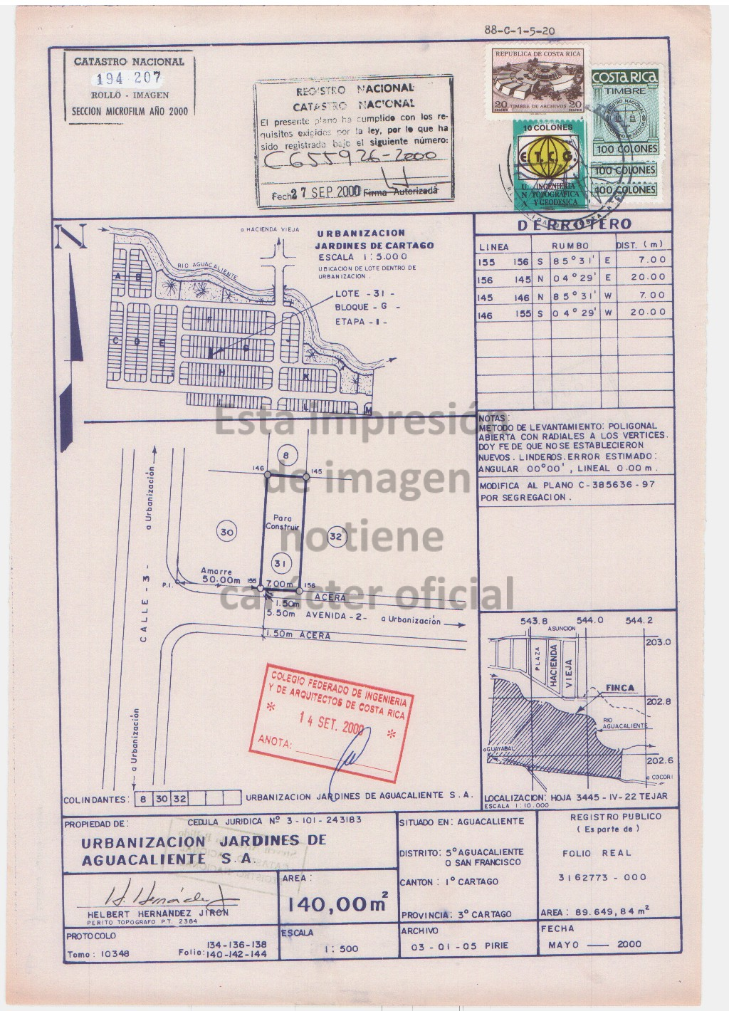 Dirección inmueble: Cartago, Agua Caliente, Urbanización Jardines de Agua Caliente Lote 31 G