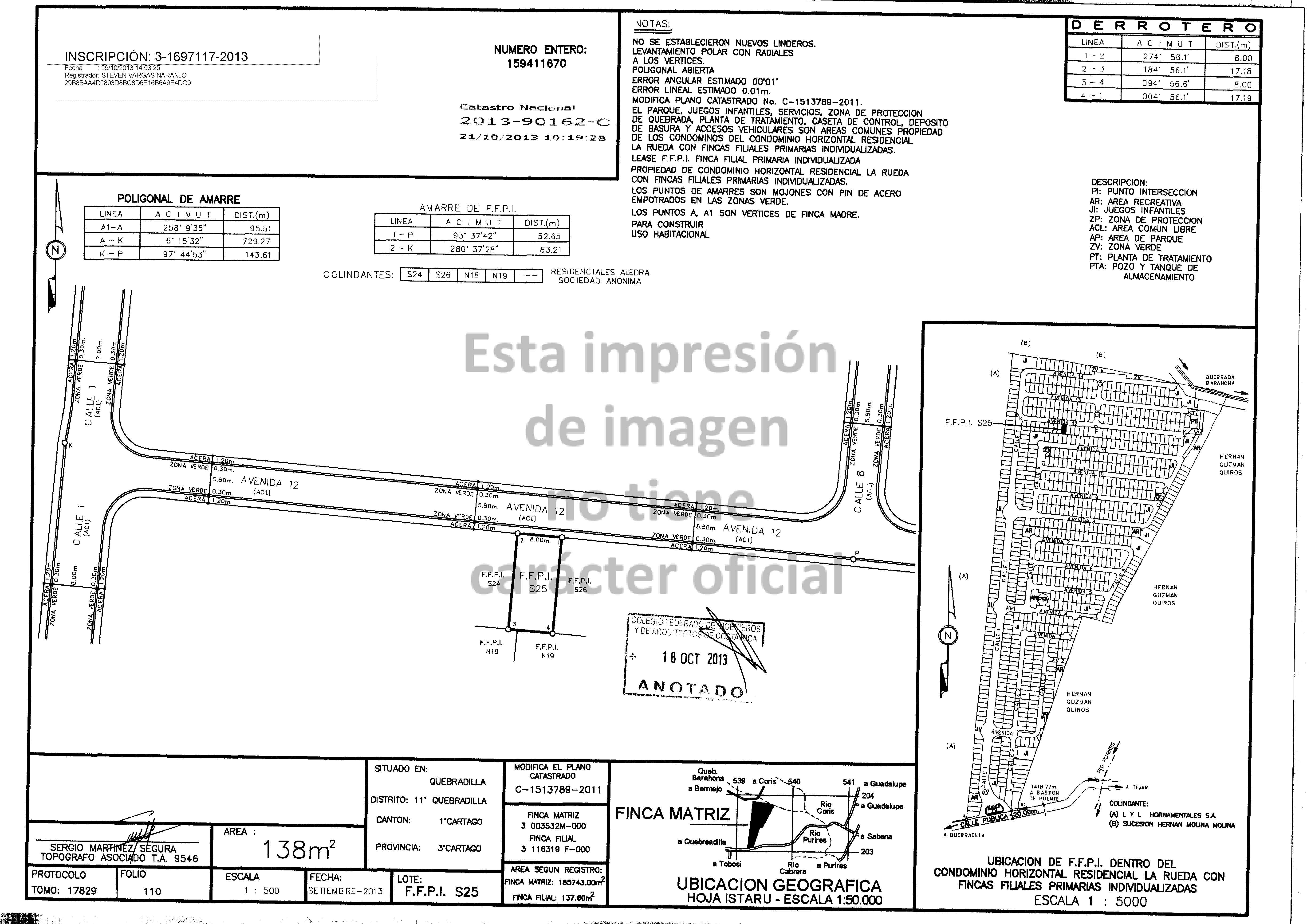 Nota: Se advierte al oferente que la marcación topográfica está realizada, sin embargo, será responsabilidad del cliente, corroborar está al momento de requerirlo con un profesional en la materia, siendo esto un costo para el cliente y no para el BN.