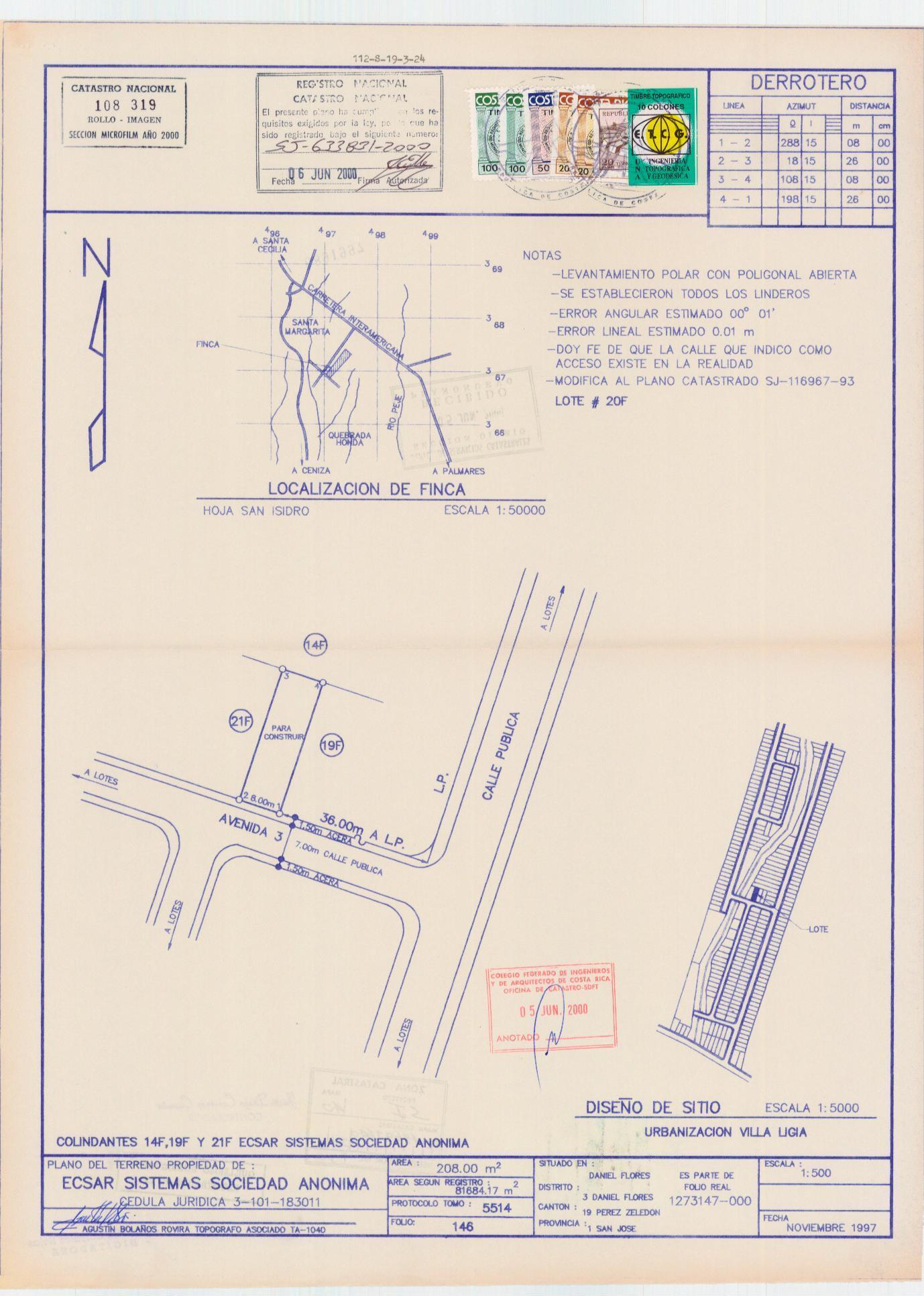 Dirección inmueble: SITUADA EN EL DISTRITO 3-DANIEL FLORES CANTON 19-PEREZ ZELEDON DE LA PROVINCIA DESAN JOSÉ. RESIDENCIAL VILLA LIGIA, DE LA PANADERÍA VILLA LIGIA 700 MTS SUROESTE Y 50 M SURESTE, DESPUÉS DEL PUENTE