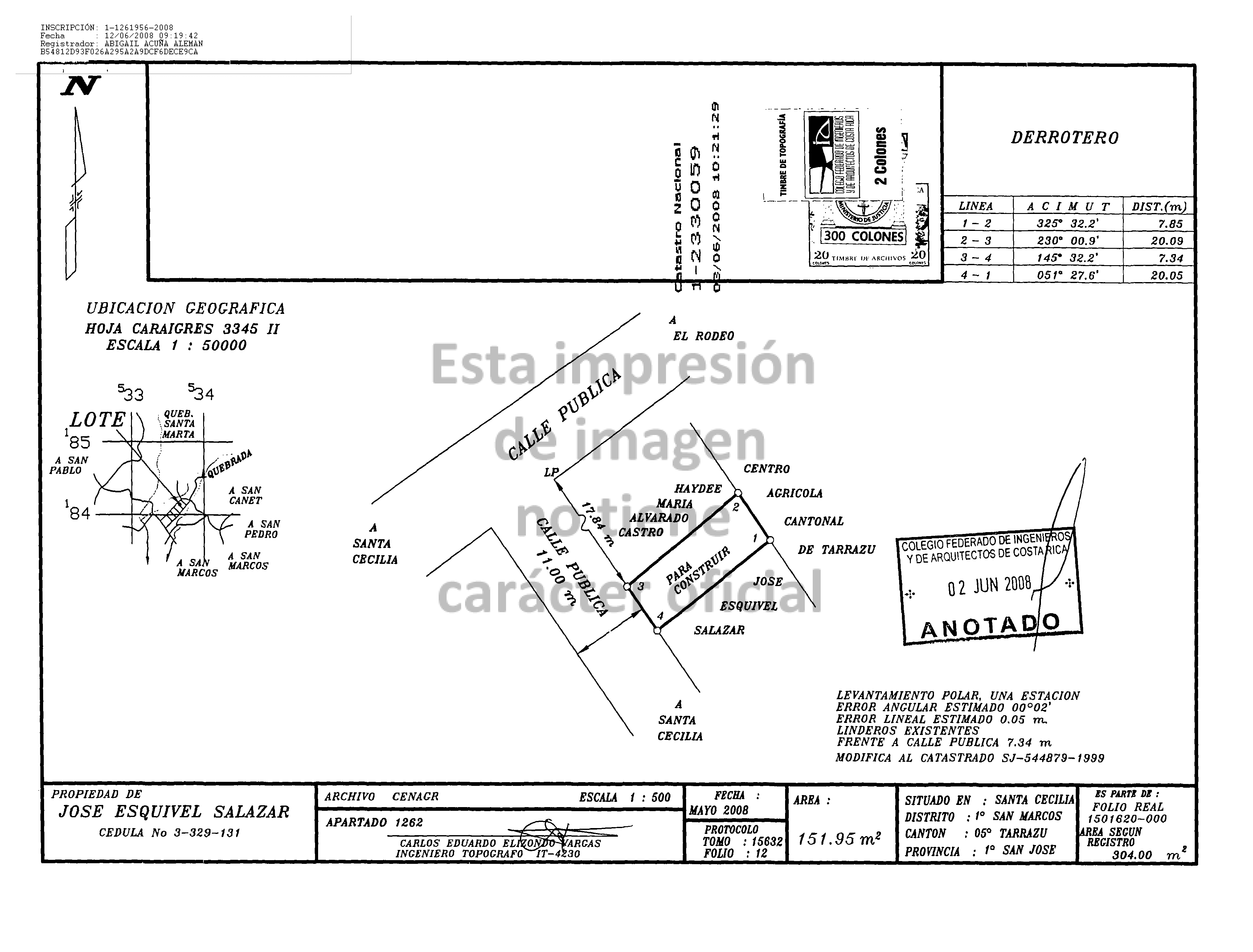 Dirección inmueble: San José - Tarrazú - San Marcos - Santa Cecilia, 300 m noreste de la esquina suroeste del Liceo de Tarrazú y 25 m sureste. Vivienda costado izquierdo.